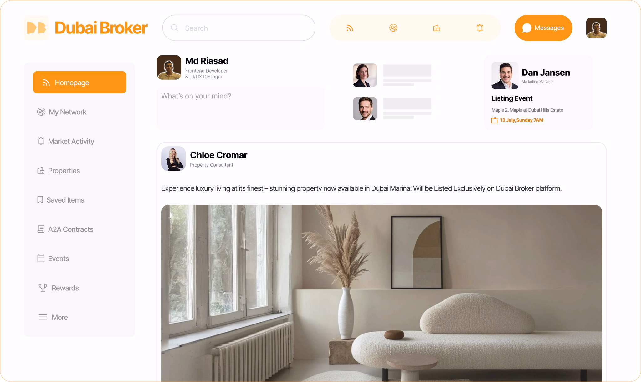 A secure, closed platform designed exclusively for Dubai’s licensed real estate brokers. Network securely, close A2A contracts, and unlock oppurtunity